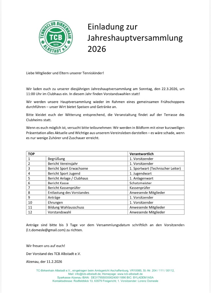 Für die Aktion meldet ihr euch bitte wie folgt an: Per E-Mail an info@tcb-albstadt.de oder direkt an Lorenz bspw. via WhatsApp